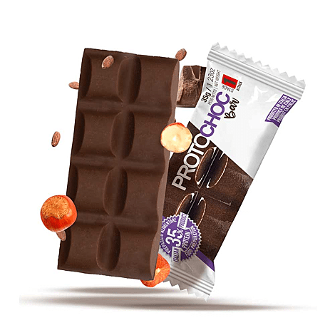 Chocolade met 12,25 g eiwitten per portie (Protomax).