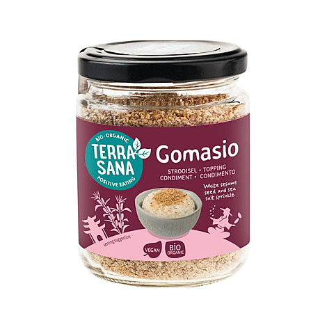 Gomasio is voor Japanners als tafelzout voor Europeanen. Een smakelijk strooisel van geroosterd en gevijzeld blank sesamzaad en zeezout.