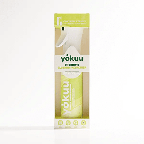 Wist je dat 69% van kleding wordt gewassen alleen om geurtjes te verwijderen? Met de probiotische kledingverfrisser van YOKUU sla je de wasbeurt gewoon over. Perfect voor wanneer je kleding niet écht vuil is, maar ook niet helemaal fris meer. Een paar sprays nemen geurtjes weg, halen lichte kreukels uit de stof en frissen je kleding op. Goed voor je waterverbruik, energie én die extra luie dagen.