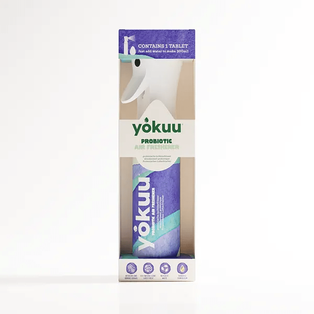 De probiotische luchtspray van YOKUU frist je ruimte op en herstelt de balans in de lucht binnenshuis. Met een paar vernevelingen laat je miljarden goeie bacteriën los die geurmoleculen afbreken. Niet maskeren, maar écht neutraliseren.
